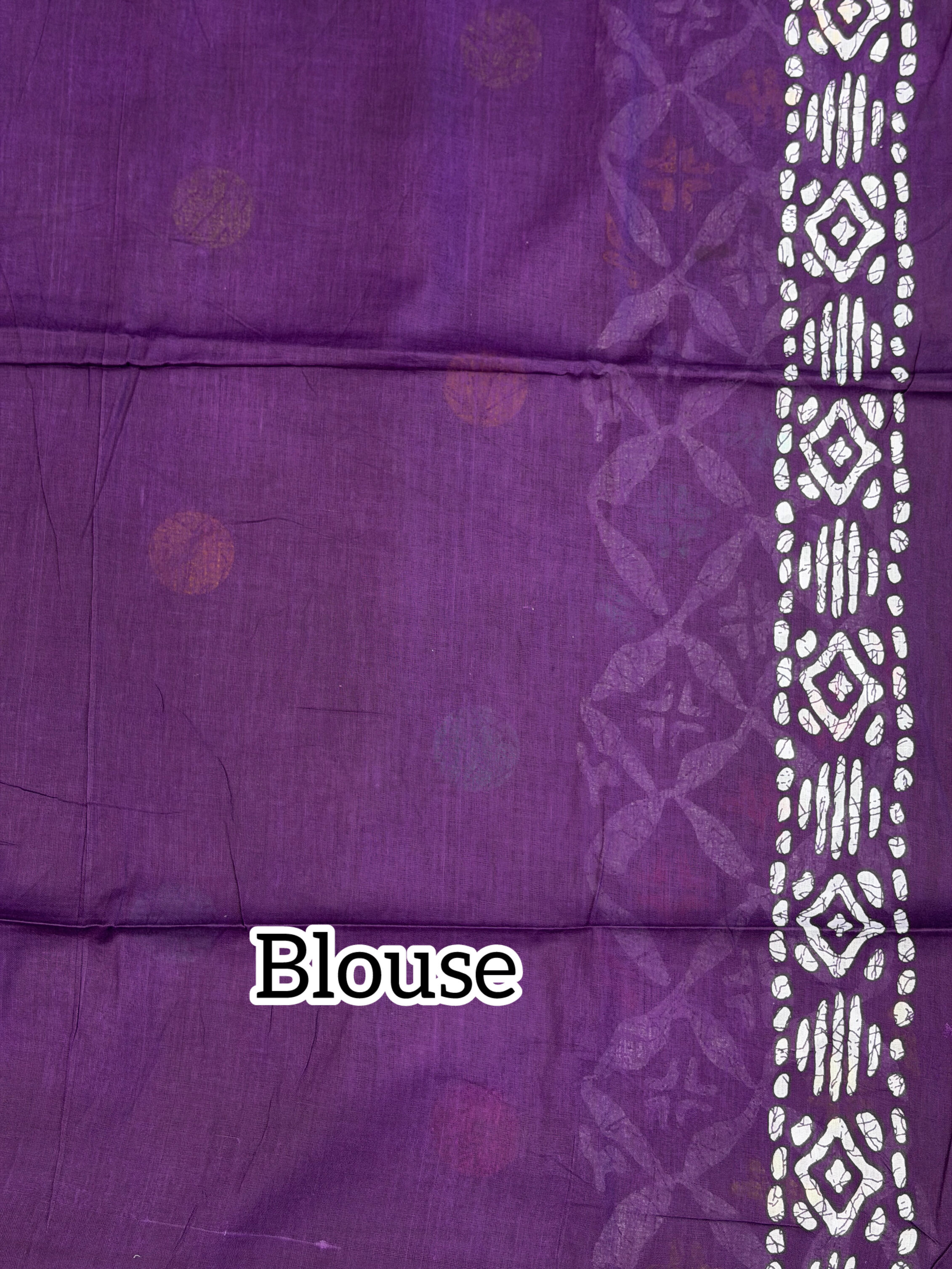 Soft cotton saree with sungudi and batik type pattern throughout the body with similar pattern blouse
