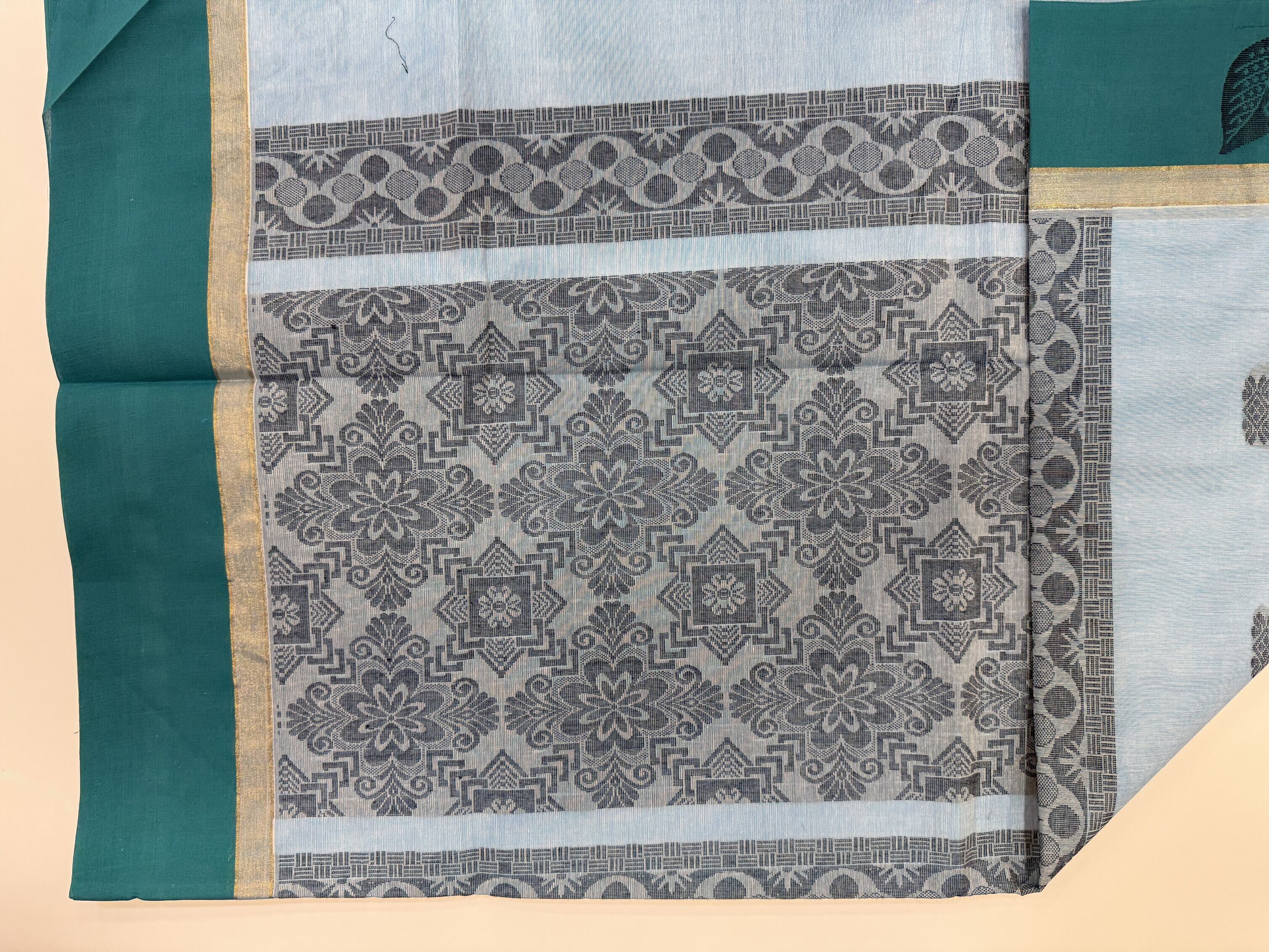 FANCY COTTON SAREE WITH LIGHT GOLDEN ZARI & PLANE LEAF BORDER