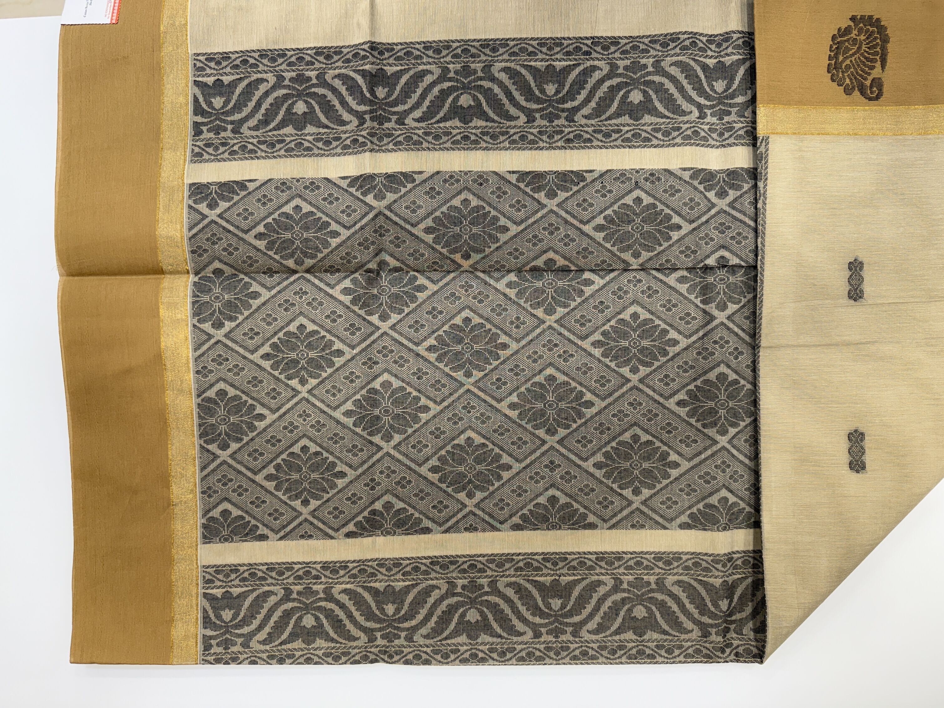 FANCY COTTON SAREE WITH LIGHT GOLDEN ZARI & PLANE  MOTIF BORDER