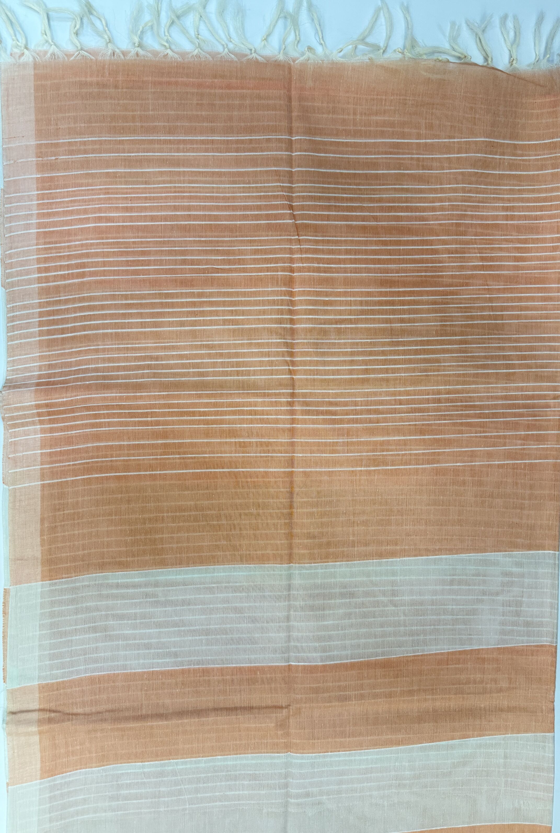 PURE Cotton Saree in Horizontal pattern with small  Border & Tassels attached in  Pallu. Blouse color horizontal Pattern.