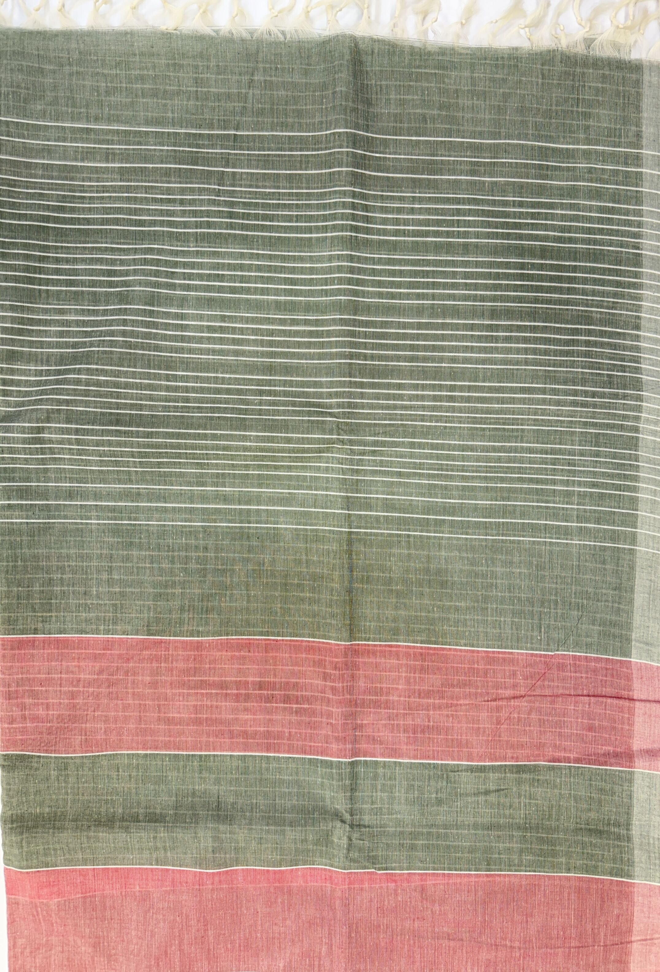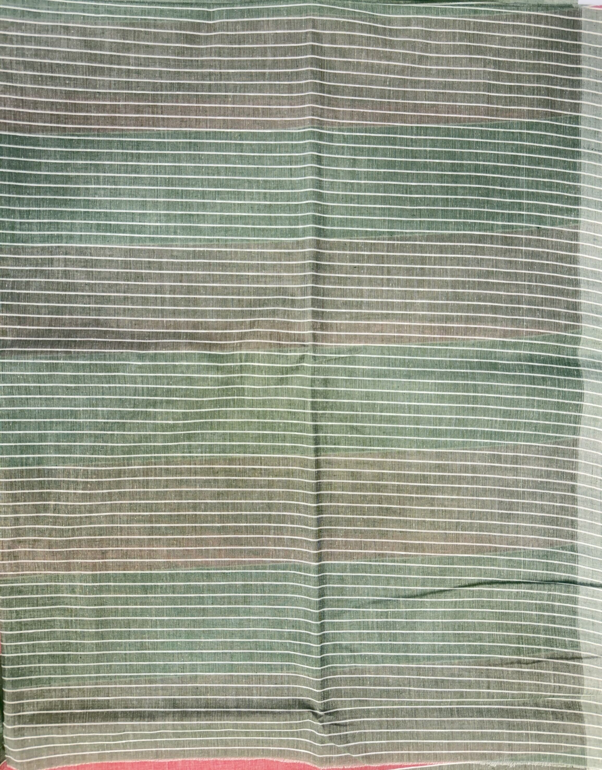 PURE Cotton Saree in Horizontal pattern with small  Border & Tassels attached in  Pallu. Body color horizontal blouse.
